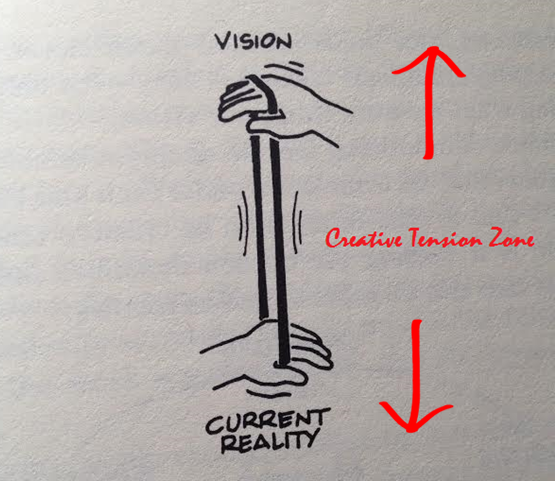 This Creative Tension idea actually aligns really well with Toyota Production System (TPS). In TPS, one is asked to understand the current state, the ideal state and the gap. This allows creation of countermeasures to reach the ideal state.