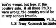 “You’re wrong, but look at the positive side. If all those Ph.D.’s were wrong, the country would be in very serious trouble.”